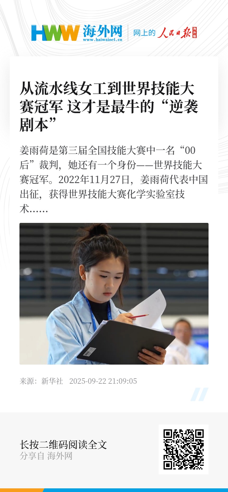 从流水线女工到站在世界技能大赛的舞台上,再到如今成为一名裁判员,姜雨荷用技能写下人生最牛的“逆袭剧本”。