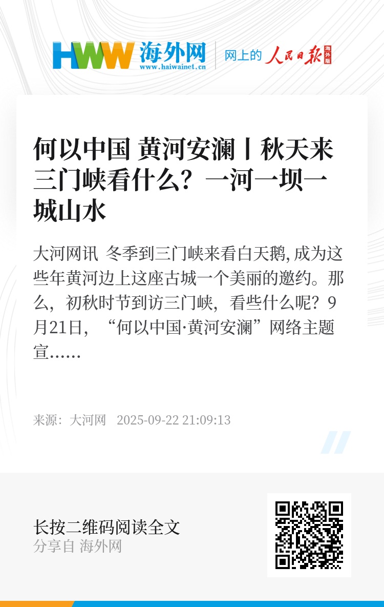 站在三门峡生态廊道远眺,一边是千年黄河的奔流不息,一边是现代水利工程的巍然屹立,而中间连接它们的,是人与自然和谐共生的不懈追求。从大禹治水的传说,到“万里黄河第一坝”的建设,再到如今集生态、科技与文化于一身的中流砥柱博物馆,作为河南西大门,三门峡守护着黄河安澜,传承着民族精神,这座城市每一步发展,都是对时代命题的最美答卷。(莫韶华 张家祺 秦臻 刘晓明 魏凯)