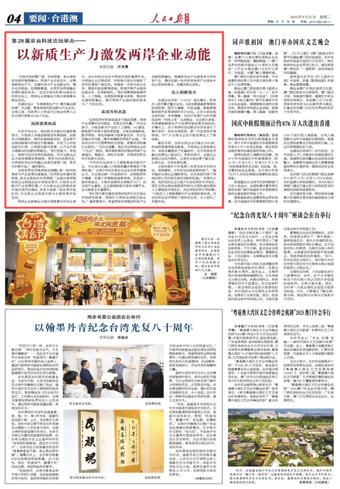 “大陆市场前景广阔、优势显著,是台商投资发展的理想舞台。两岸产业优势互补,应聚焦新质生产力,加强科技与产业创新合作,携手应对挑战、拓展新赛道,共同开创两岸融合发展的美好未来。”在近日举办的第28届京台科技论坛上,两岸企业家峰会大陆方面理事长郭金龙说。