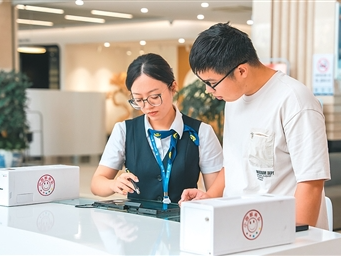 江苏省张家港农商银行的工作人员指导客户办理金融业务。