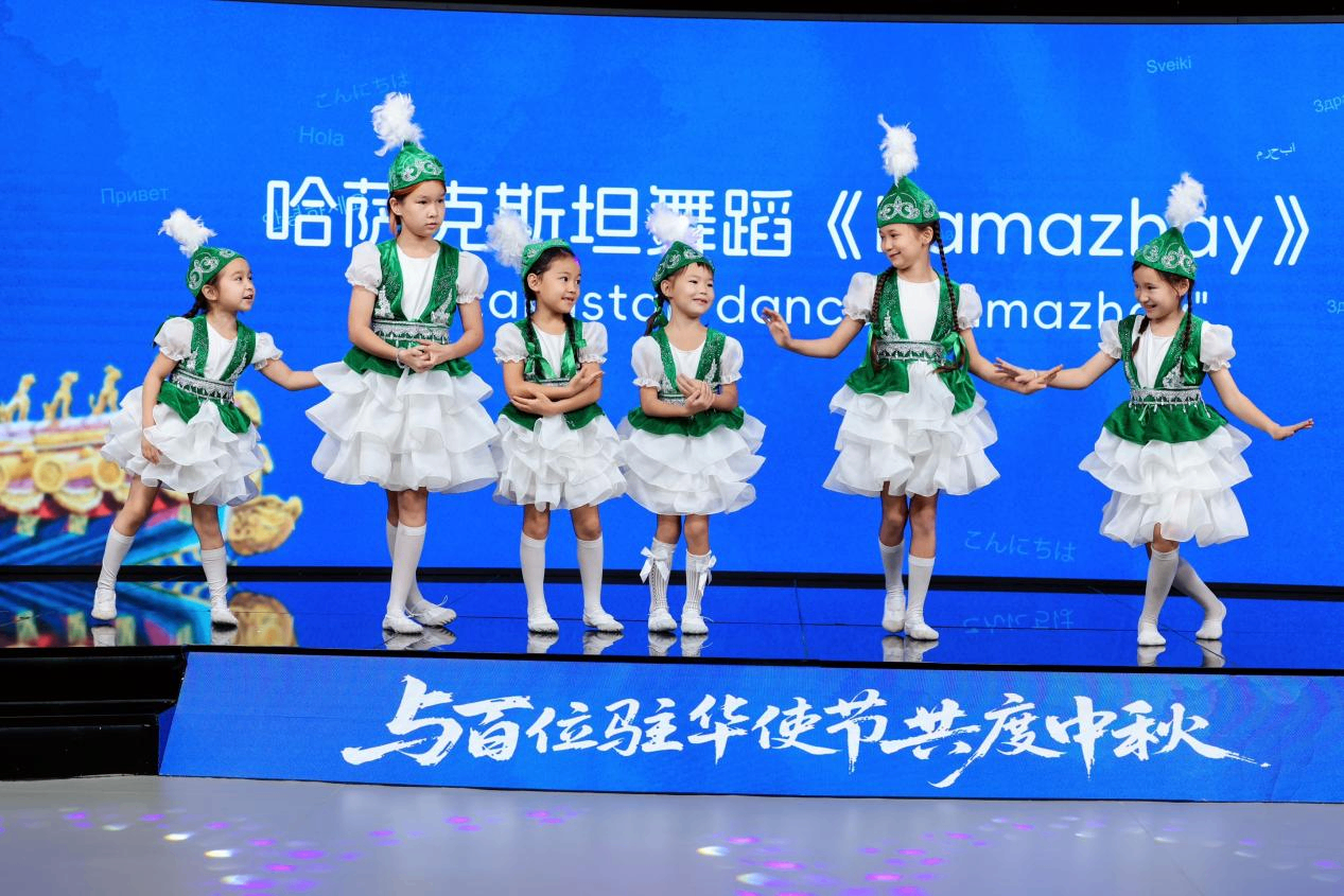 哈萨克斯坦驻华大使馆推荐了舞蹈《卡玛扎伊》,六个可爱的小女孩用稚嫩的芭蕾舞姿引来了观众的阵阵喝彩。
