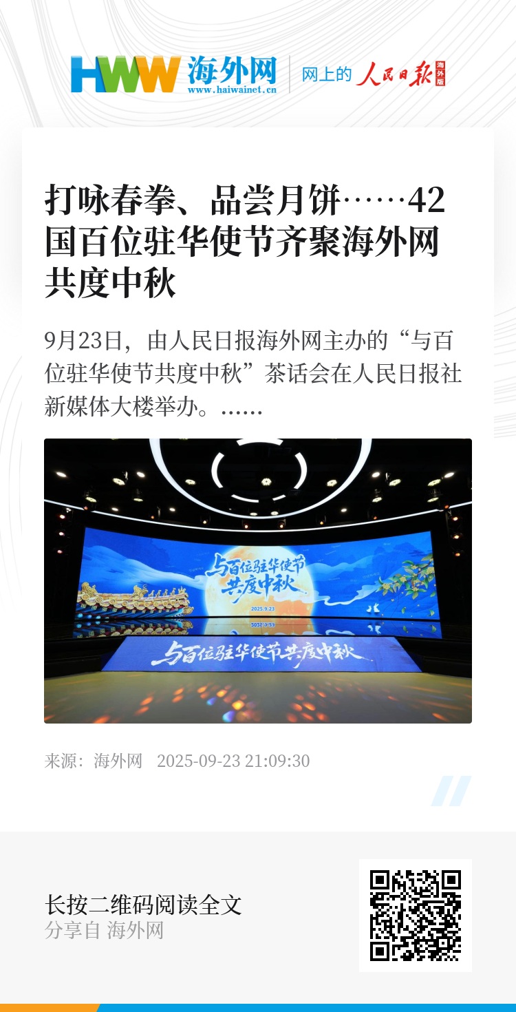 9月23日,人民日报海外网中秋茶话会现场。(海外网 谢明 摄)