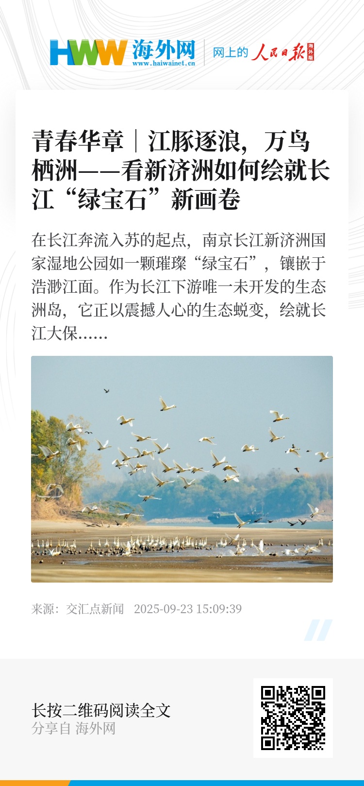 在长江奔流入苏的起点,南京长江新济洲国家湿地公园如一颗璀璨“绿宝石”,镶嵌于浩渺江面。作为长江下游唯一未开发的生态洲岛,它正以震撼人心的生态蜕变,绘就长江大保护的壮丽画卷。9月22日,2025“把青春华章写在祖国大地上”网络主题采访采风活动走进南京长江新济洲国家湿地公园,记者一行循着长江的浪花,走入这幅生态画卷,聆听这片土地上最动人的生命协奏。