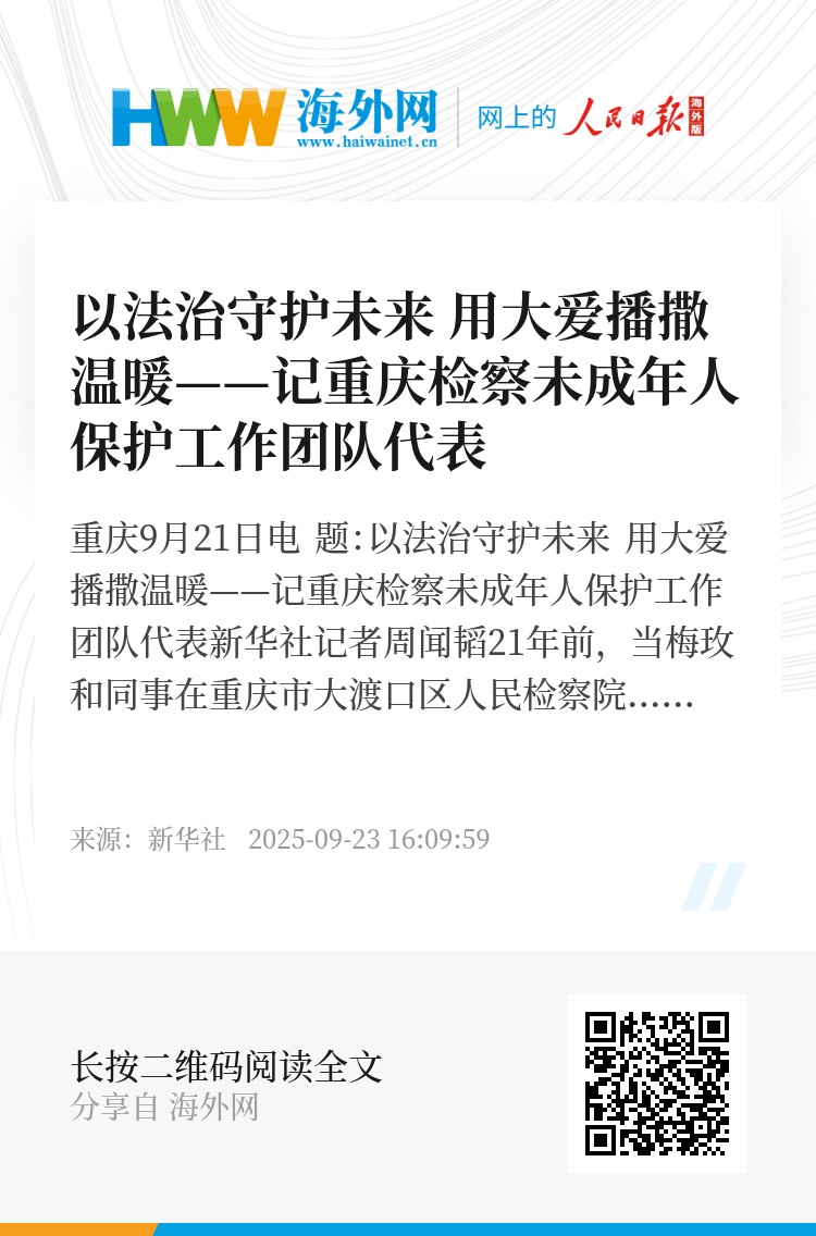 新华社重庆9月21日电 题:以法治守护未来 用大爱播撒温暖——记重庆检察未成年人保护工作团队代表
