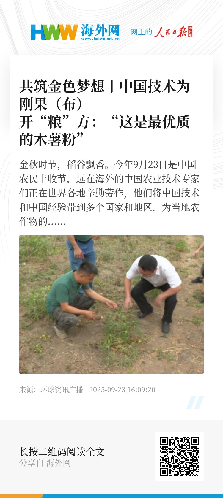 金秋时节,稻谷飘香。今年9月23日是中国农民丰收节,远在海外的中国农业技术专家们正在世界各地辛勤劳作,他们将中国技术和中国经验带到多个国家和地区,为当地农作物的增产丰收贡献力量。