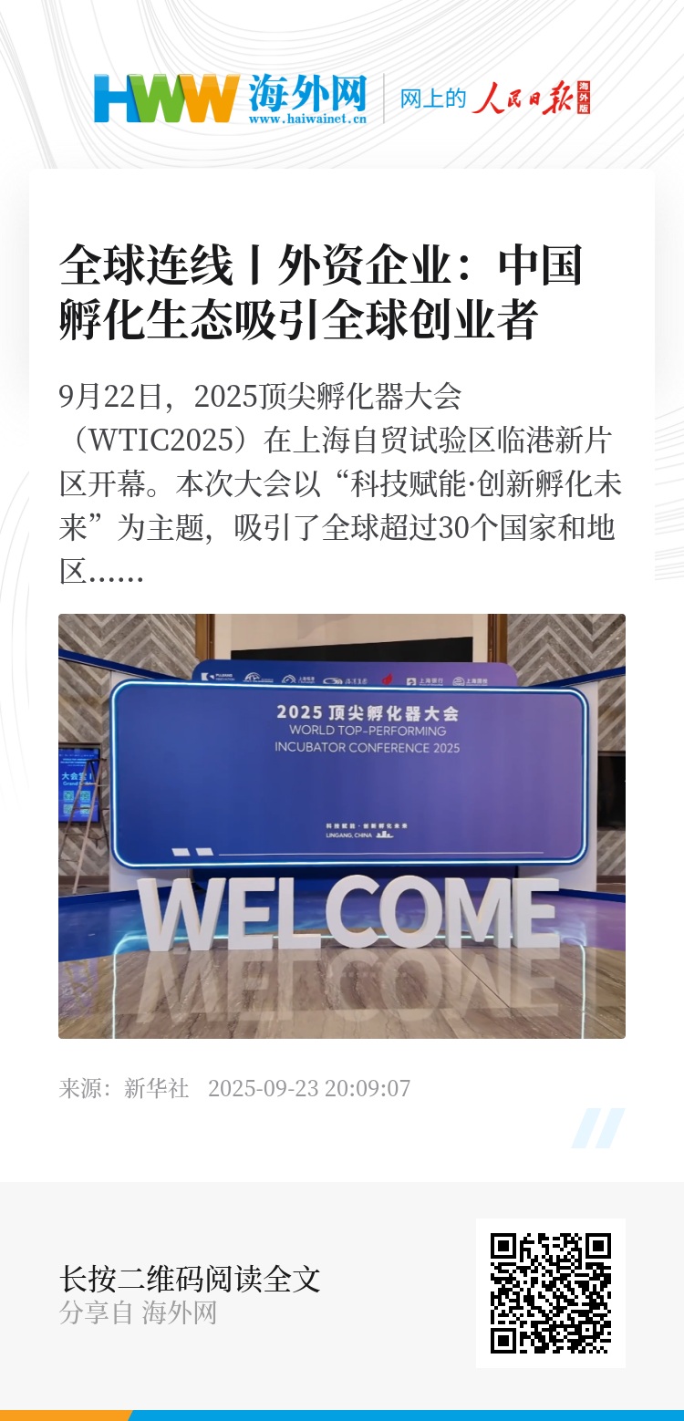 9月22日,2025顶尖孵化器大会(WTIC2025)在上海自贸试验区临港新片区开幕。