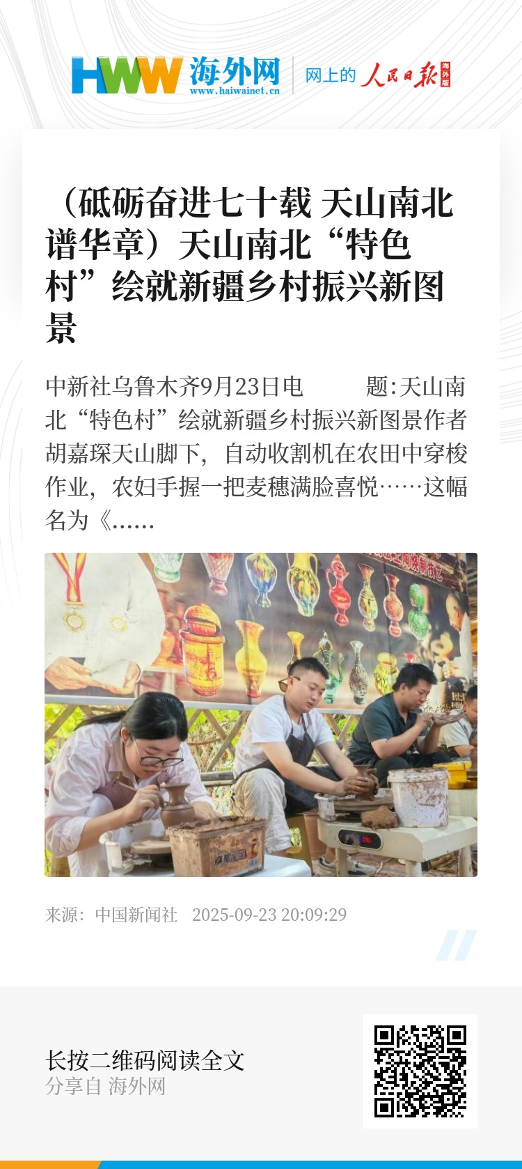 中新社乌鲁木齐9月23日电 题:天山南北“特色村”绘就新疆乡村振兴新图景