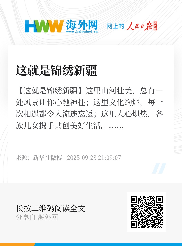 【这就是锦绣新疆】这里山河壮美,总有一处风景让你心驰神往;这里文化绚烂,每一次相遇都令人流连忘返;这里人心炽热,各族儿女携手共创美好生活。