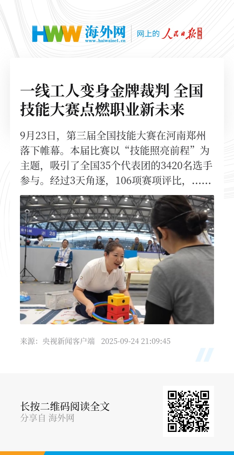 本届技能大赛的3400多名选手,既有一线工人,也有院校老师,日趋高素质专业化的人才队伍,在改变自身命运的同时,也为经济社会发展注入蓬勃力量。