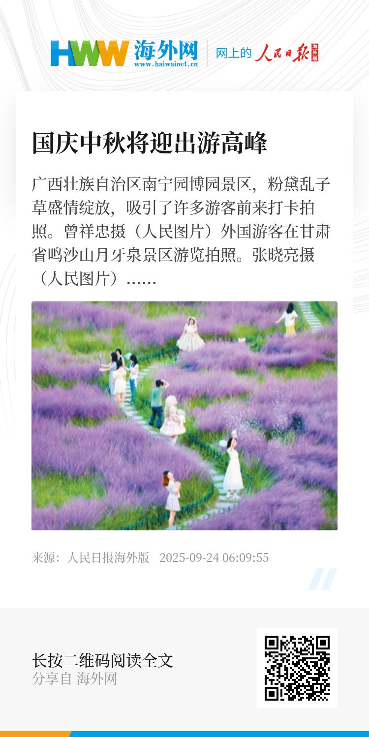 春秋旅游副总经理周卫红介绍,“上海、宁波至河内”的直飞包机航线自7月开通以来,打通了越南游客来华的高效通道,显著降低其前往上海及长三角地区的出行成本与时间成本。双节假期,越南来华客流将持续增长,河内赴上海的5至6日自由行产品最受越南年轻游客欢迎,他们不仅可游览上海,还能选择江苏、浙江的短途联线,领略中国的都市风光与水乡韵味。此外,美国、俄罗斯等国的入境游客将以定制游的形式,游览中国多地的秋季风光。