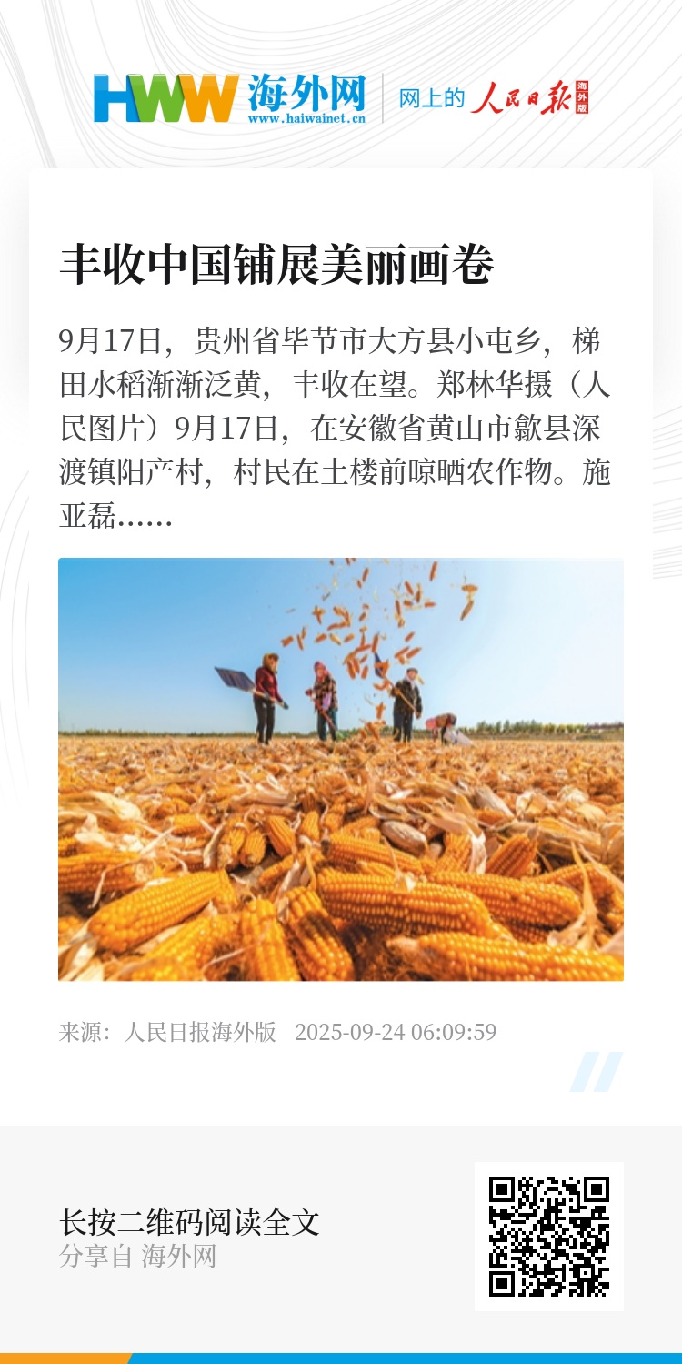 在上海,一系列活动点燃城乡共庆氛围:“云瞰沪野·智绘丰景”无人机航拍作品征集正在火热进行中;9月20日至27日,朱泾镇花开海上生态园举办为期八天的“打卡魔都后花园 畅玩丰收嘉年华”主题市集,集中展销上海优质农产品、特色副食品及文创产品,并配套文艺演出;外滩上演丰收主题无人机灯光秀,以现代科技艺术致敬农业、礼赞农民……