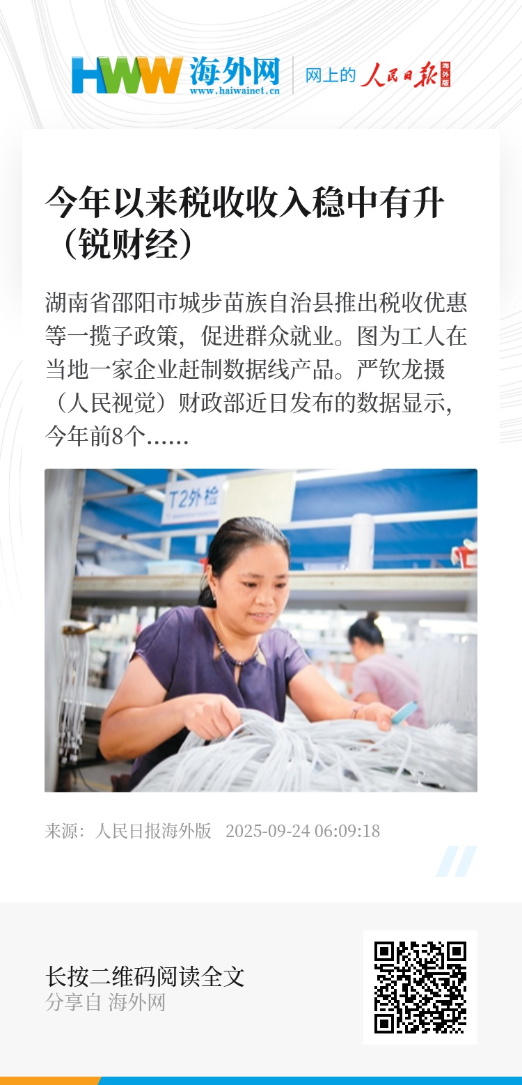 财政部近日发布的数据显示,今年前8个月,全国一般公共预算收入14.82万亿元,同比增长0.3%,增幅比前7个月提高0.2个百分点;全国税收收入12.11万亿元,比去年同期多26亿元,微增0.02%,累计增幅首次转正。专家分析,今年以来一系列增量和存量政策持续显效,经济运行稳中有进,高质量发展取得新成效,为税收收入增长奠定基础。
