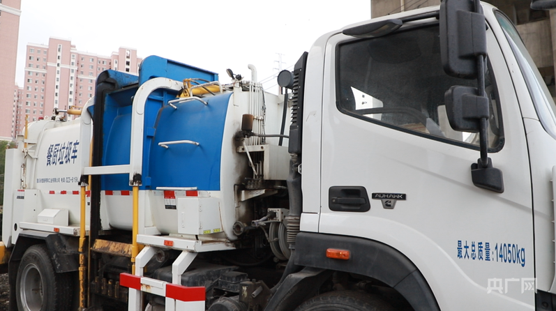 新款餐厨垃圾车 (央广网记者丁安 摄)