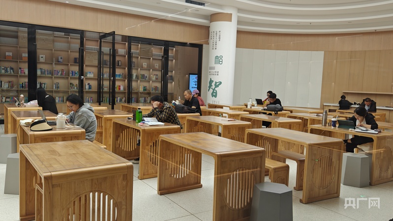 另一边的图书馆中书香氤氲,前来阅读的市民与摆放存书的工作人员的身影交织,共同勾勒出一幅充满活力与温馨的求知画卷。