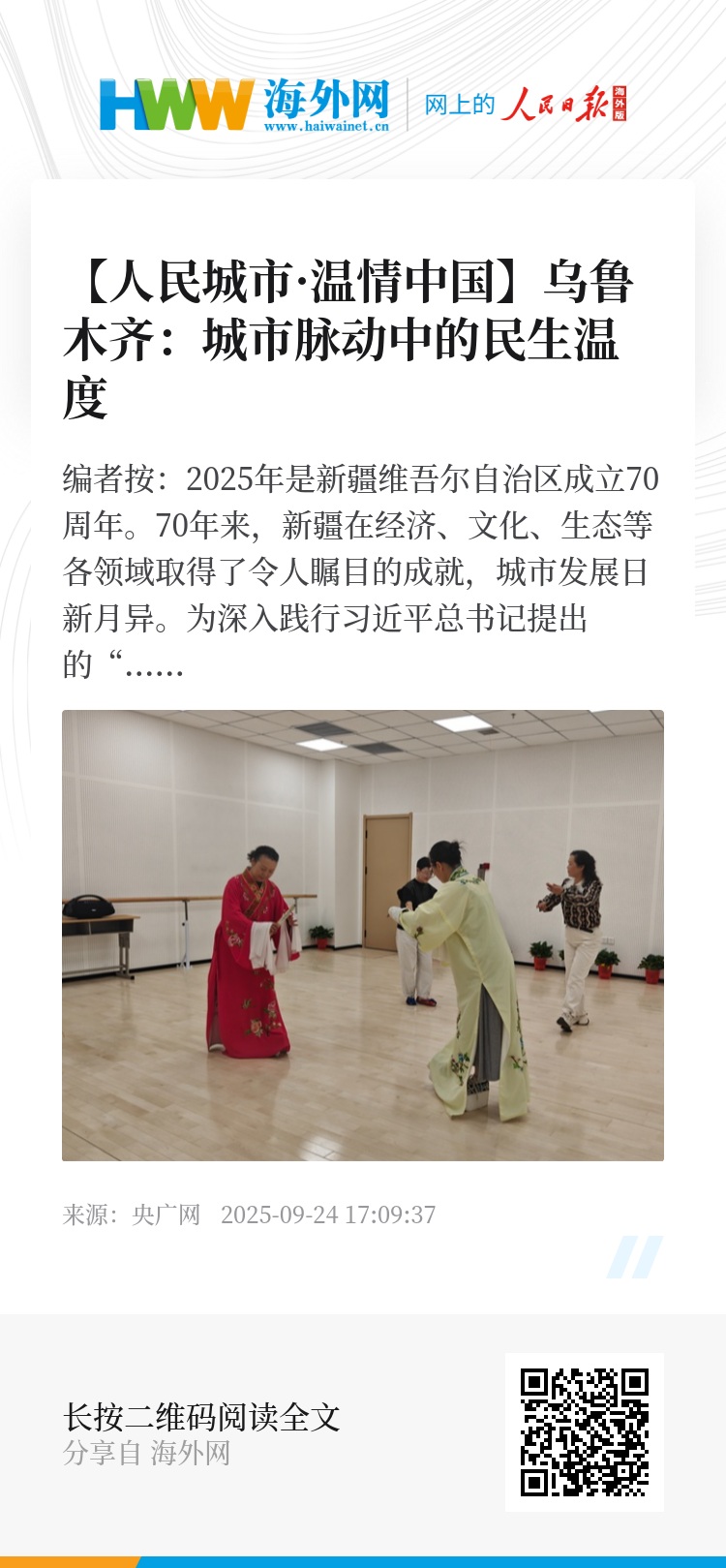 编者按:2025年是新疆维吾尔自治区成立70周年。70年来,新疆在经济、文化、生态等各领域取得了令人瞩目的成就,城市发展日新月异。为深入践行习近平总书记提出的“人民城市人民建,人民城市为人民”重要理念,央广网新疆频道联合新疆维吾尔自治区党委网信办,精心策划了“人民城市·温情中国”新疆篇网络主题活动。记者们将深入天山南北14个地州,用脚步探寻每一个城市的肌理,用镜头捕捉每一处民生的温度,生动呈现新疆各族群众携手共建、共享发展的城市新图景。