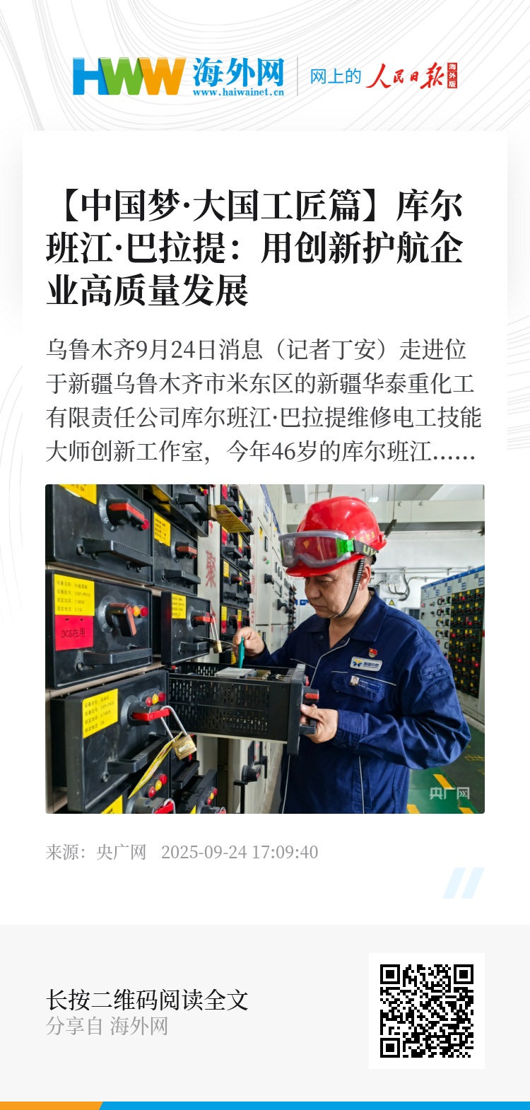 多年来,由库尔班江主导和参与的技术改进累计达600余项,产生直接经济效益超百万元。他用智慧和实践证明了,工匠之手,既能紧握安全之盾,也能点亮创新之光,实现节能降耗与提质增效的双赢。2025年,他被授予“全国劳动模范”称号。