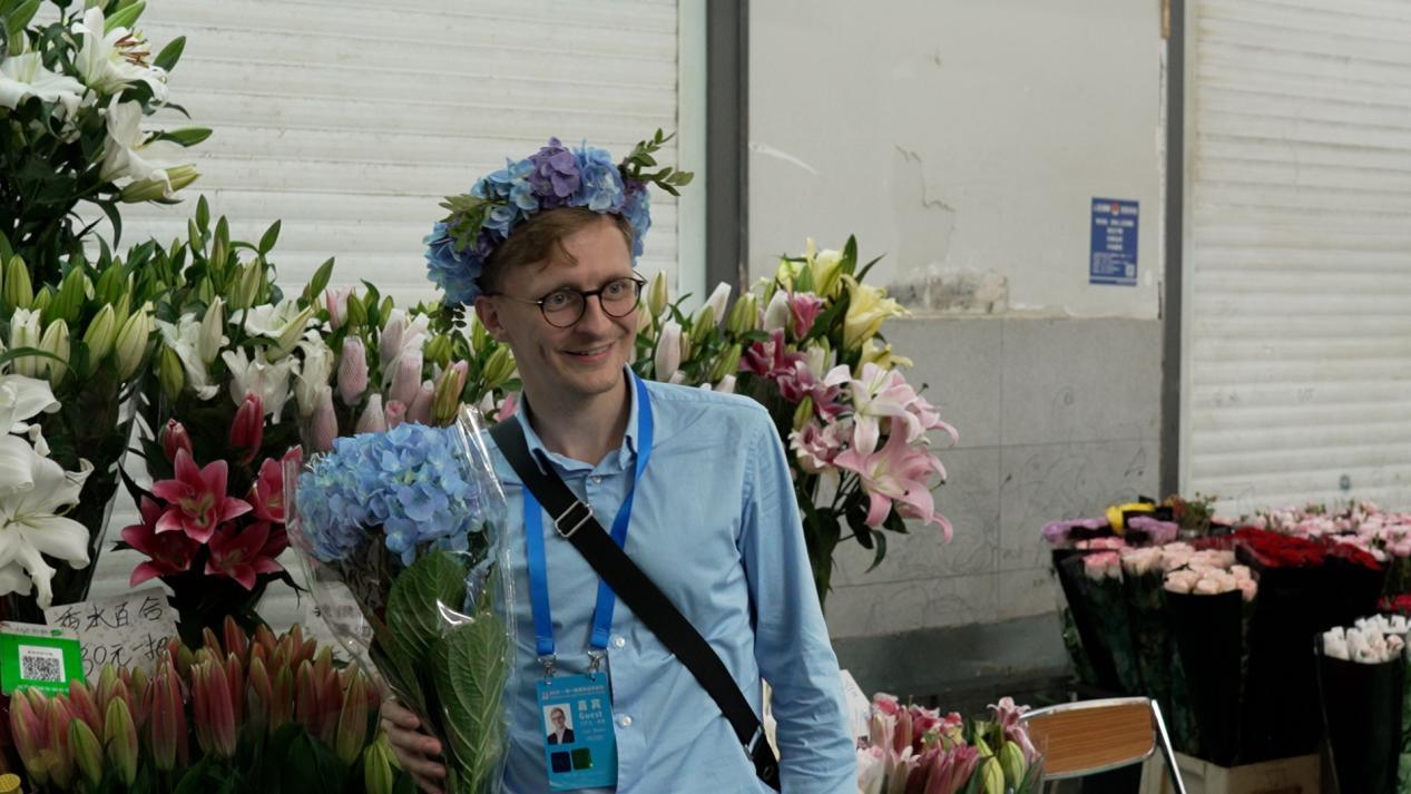 图为瑞典《新日报》高级编辑艾萨克·博曼参观中国斗南花卉市场 李一丹摄