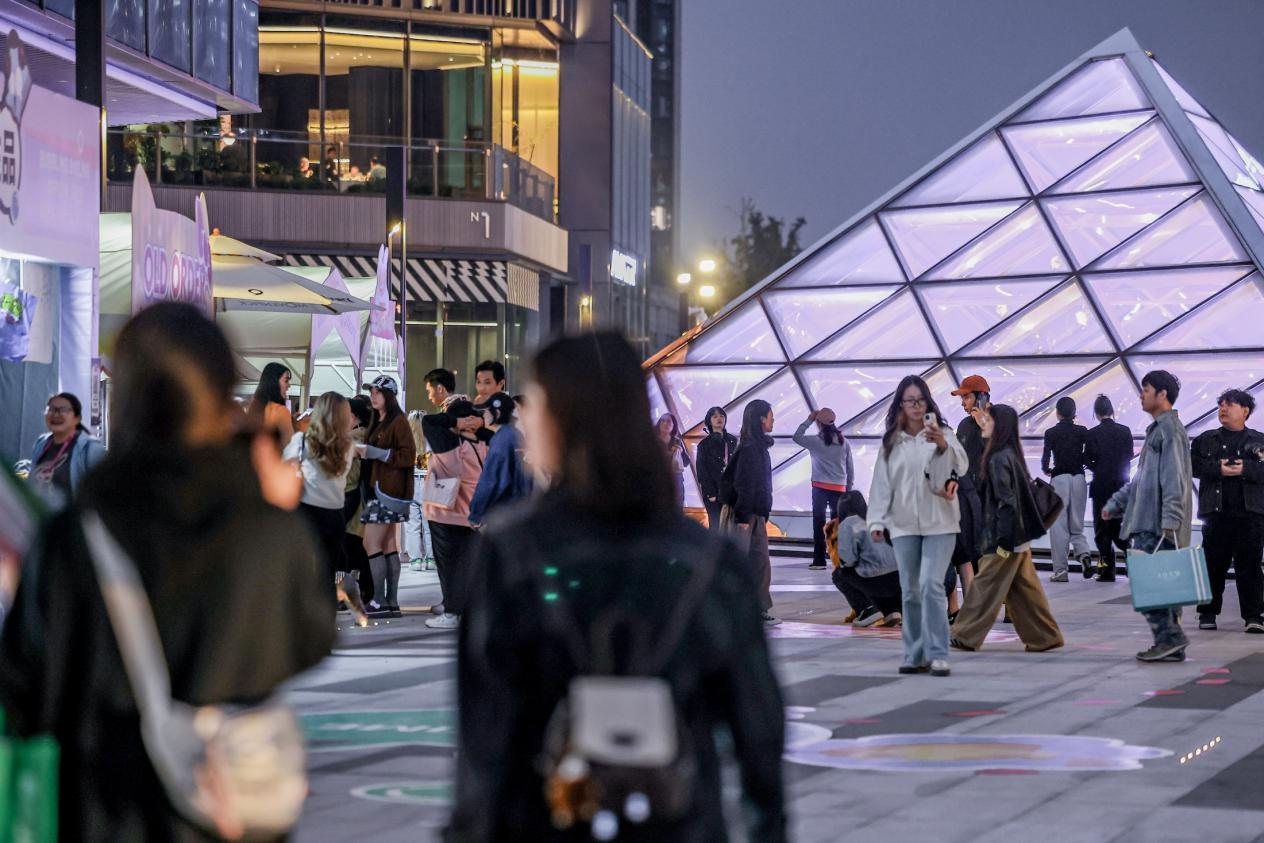 “保利时光里整个的调性,我觉得是很时尚,很符合年轻人对生活态度的追求。”市民孙梦诗的感受道出了这片空间的独特之处。夜色中,草坪依旧开放,市集里小摊林立,艺术展示与音乐表演点缀其中。成都特有的“慢生活”在这里得到了生动地体现。