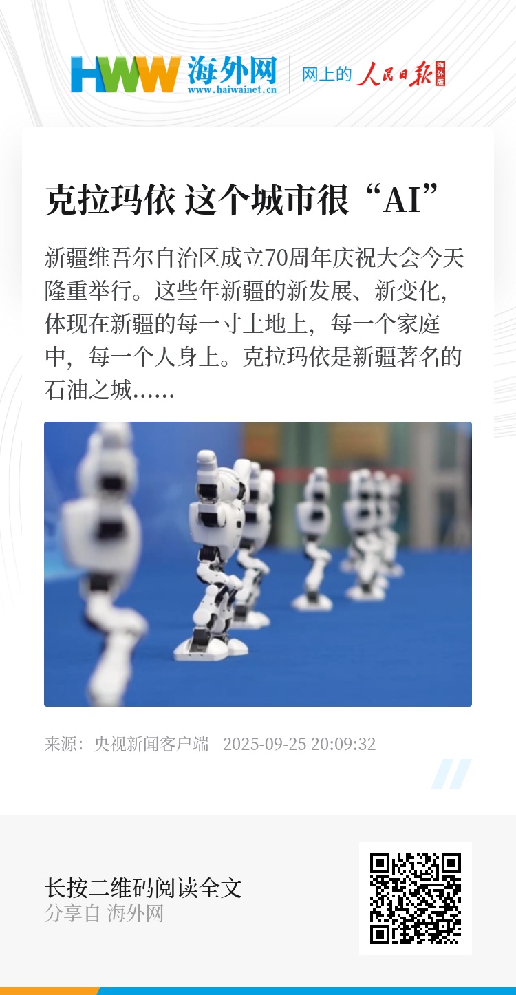 新疆维吾尔自治区成立70周年庆祝大会今天隆重举行。这些年新疆的新发展、新变化,体现在新疆的每一寸土地上,每一个家庭中,每一个人身上。克拉玛依是新疆著名的石油之城,现在,它已经“更新”成了一个“数字算力高地”,越来越多的新疆青年在新产业里,展现着新风貌。