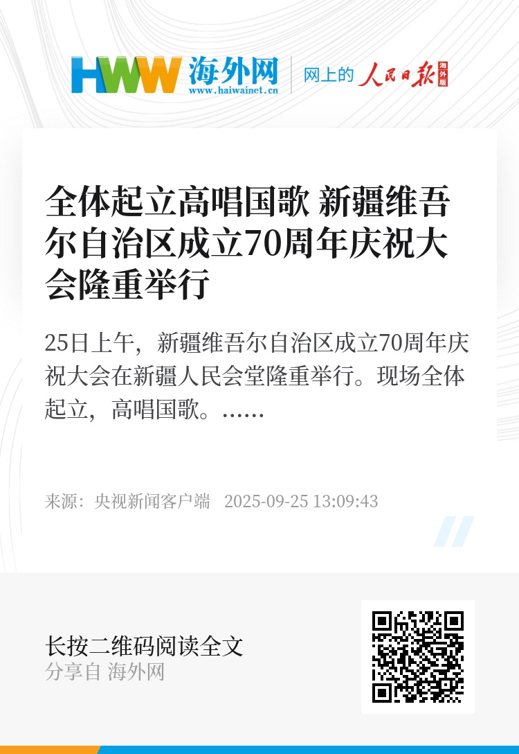 25日上午,新疆维吾尔自治区成立70周年庆祝大会在新疆人民会堂隆重举行。现场全体起立,高唱国歌。