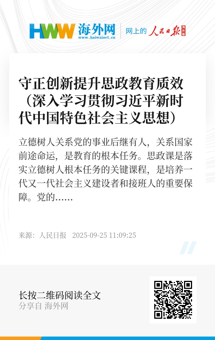 立德树人关系党的事业后继有人,关系国家前途命运,是教育的根本任务。思政课是落实立德树人根本任务的关键课程,是培养一代又一代社会主义建设者和接班人的重要保障。党的十八大以来,以习近平同志为核心的党中央始终坚持把学校思政课建设放在教育工作的重要位置。习近平总书记对学校思政课建设作出重要指示,强调“要始终坚持马克思主义指导地位,以中国特色社会主义取得的举世瞩目成就为内容支撑,以中华优秀传统文化、革命文化和社会主义先进文化为力量根基,把道理讲深讲透讲活,守正创新推动思政课建设内涵式发展,不断提高思政课的针对性和吸引力”,为新时代思政课建设提供了根本遵循、指明了前进方向、规划了具体路径。