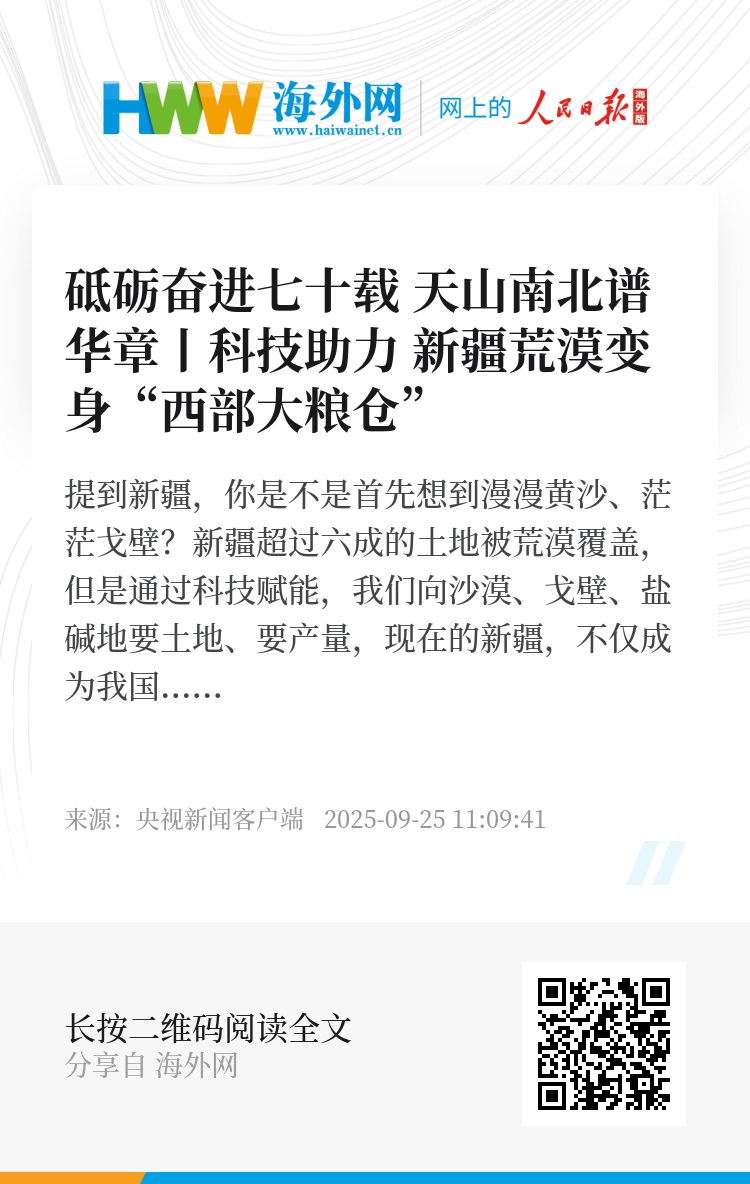 提到新疆,你是不是首先想到漫漫黄沙、茫茫戈壁?新疆超过六成的土地被荒漠覆盖,但是通过科技赋能,我们向沙漠、戈壁、盐碱地要土地、要产量,现在的新疆,不仅成为我国粮食单位面积产量第一的省份,更是鱼虾果蔬的重要供给地。新疆爆改荒漠成“西部大粮仓”。