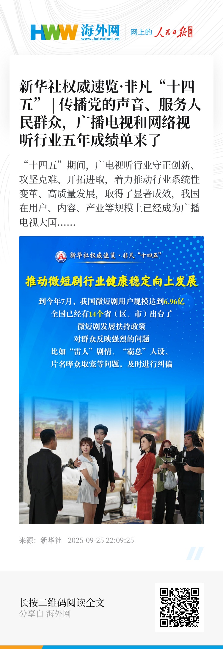 “十四五”期间,广电视听行业守正创新、攻坚克难、开拓进取,着力推动行业系统性变革、高质量发展,取得了显著成效,我国在用户、内容、产业等规模上已经成为广播电视大国、网络视听大国。跟随海报,一起了解。