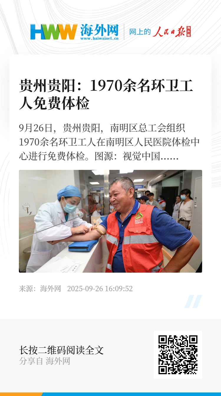 32897153,.贵州贵阳:1970余名环卫工人免费体检,.2025-09-26 16:07:52,.204309,.陈亚楠、侯兴川