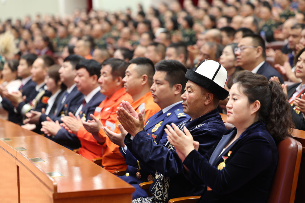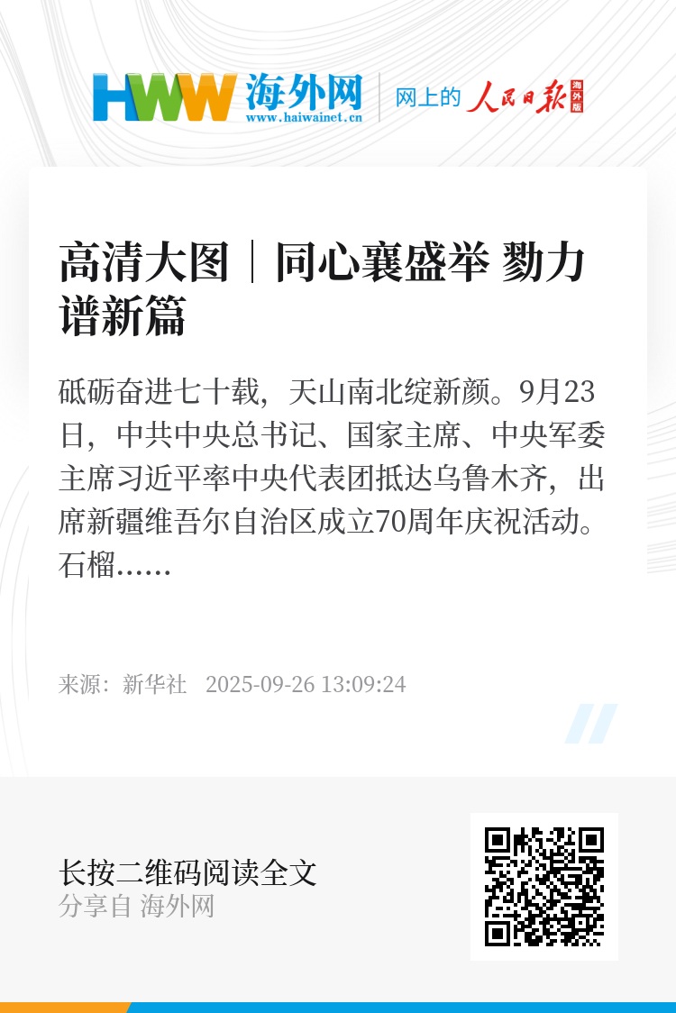 25日上午,习近平总书记在乌鲁木齐市出席新疆维吾尔自治区成立70周年庆祝大会,同新疆各族各界干部群众代表一道,热烈庆祝新疆维吾尔自治区成立70周年。
