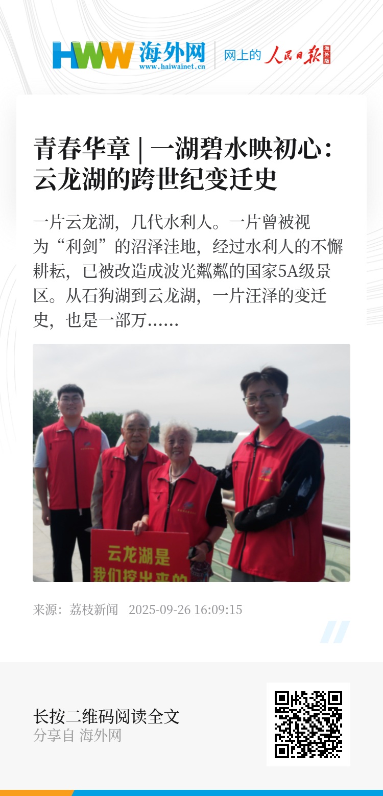 漫步在云龙湖畔,那拂过湖面的微风,仿佛也在轻声讲述着过去的故事。它讲述的不仅是制服水患的智慧,更是薪火相传的治水精神——从手挑肩扛的艰苦奋斗,到精益求精的科学守护,再到全民参与的自觉热爱。云龙湖的美好面貌,将在代代传承中灵动而永恒。