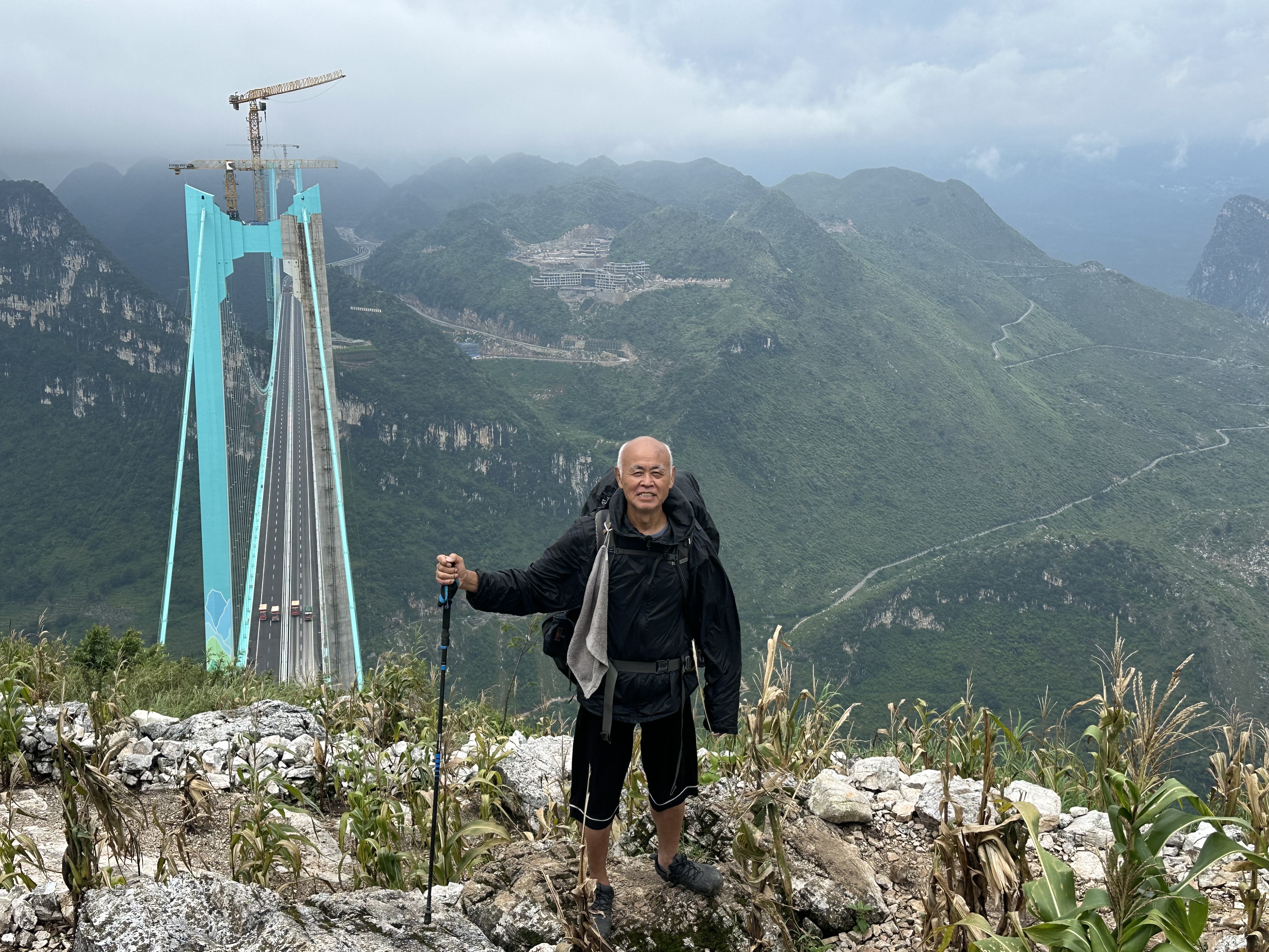 “为了看清花江峡谷大桥,我整整等了三天。”大桥关岭岸的观景平台上,73岁的背包客王永厚在观桥的人群中格外引人注目。