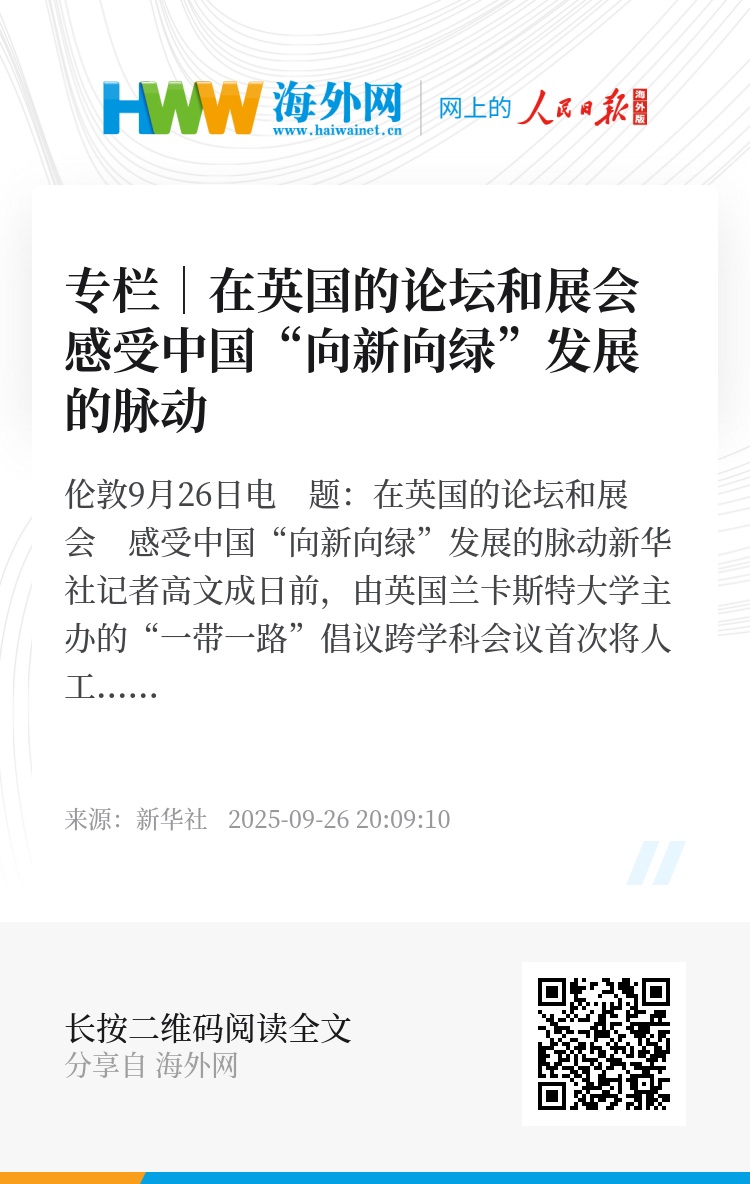 新华社伦敦9月26日电 题:在英国的论坛和展会 感受中国“向新向绿”发展的脉动