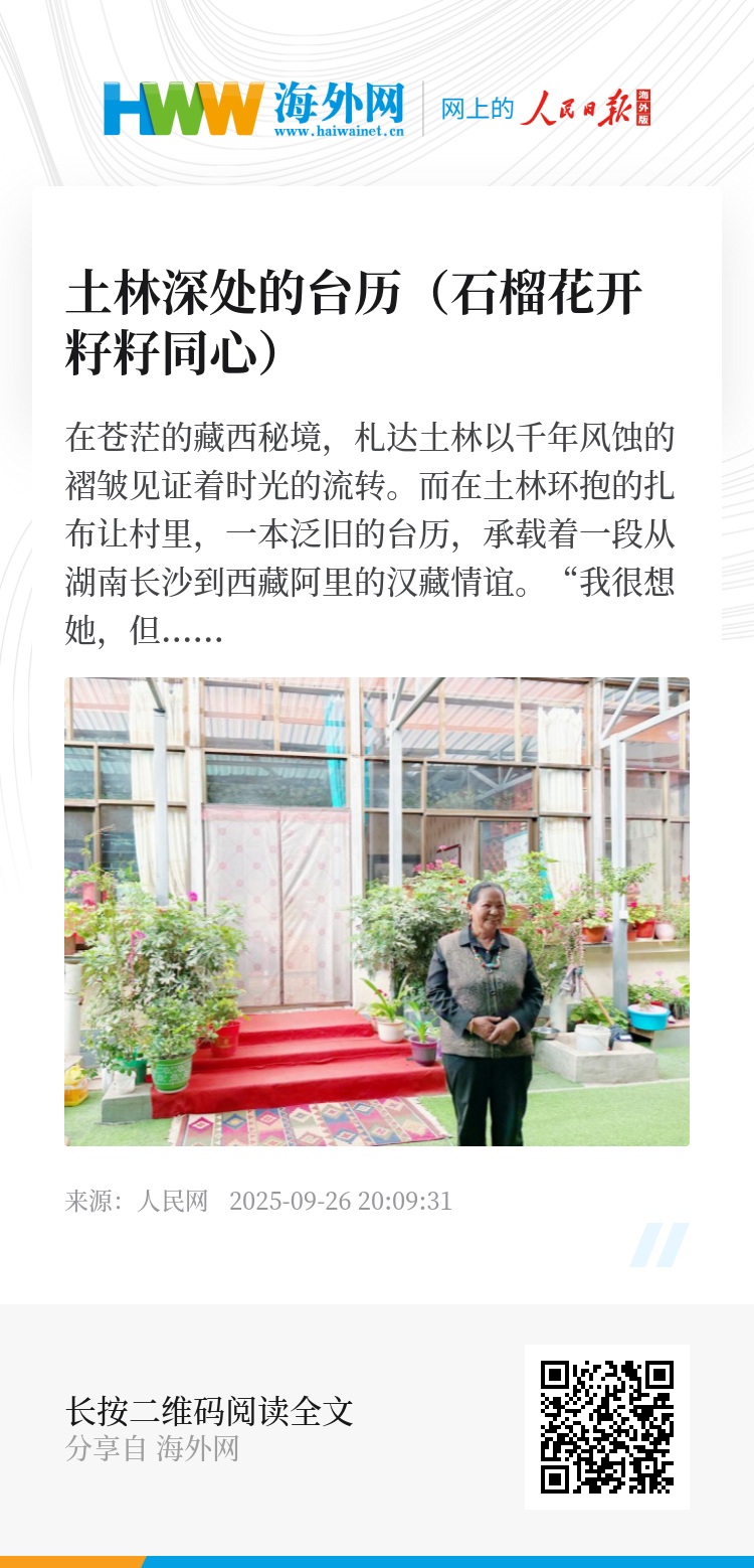 在苍茫的藏西秘境,札达土林以千年风蚀的褶皱见证着时光的流转。而在土林环抱的扎布让村里,一本泛旧的台历,承载着一段从湖南长沙到西藏阿里的汉藏情谊。