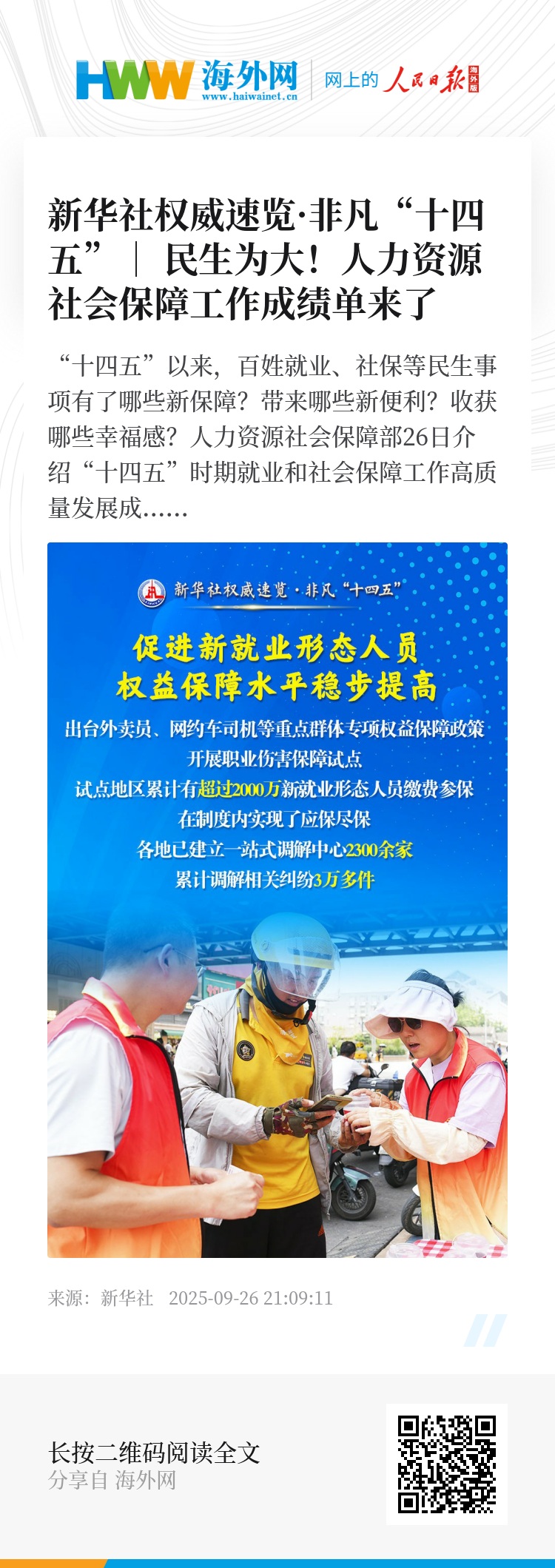 “十四五”以来,百姓就业、社保等民生事项有了哪些新保障?带来哪些新便利?收获哪些幸福感?人力资源社会保障部26日介绍“十四五”时期就业和社会保障工作高质量发展成就。跟随海报,一起了解。