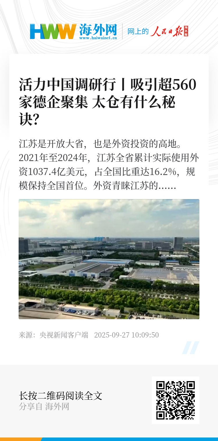 今天的《活力中国调研行》让我们走进江南的一座小城太仓,在那里聚集了超过560家德资企业。