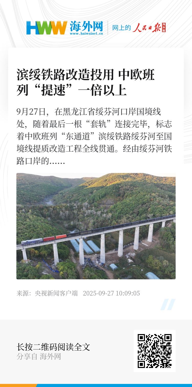 9月27日,在黑龙江省绥芬河口岸国境线处,随着最后一根“套轨”连接完毕,标志着中欧班列“东通道”滨绥铁路绥芬河至国境线提质改造工程全线贯通。经由绥芬河铁路口岸的中欧班列将转入新线路运行,时速由55公里提升至120公里,线路通过能力提升一倍以上。