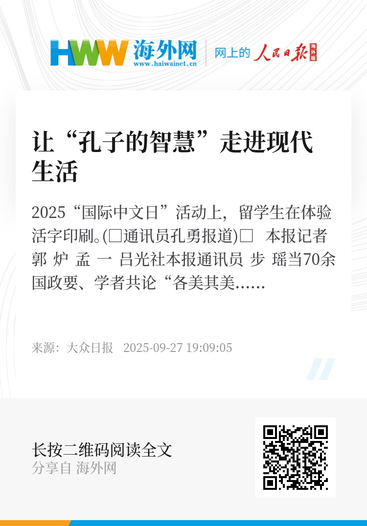 当70余国政要、学者共论“各美其美·美美与共——文明间关系与全球现代化”,当无人机队列在曲阜尼山鲁源村夜空回应“AI发展的伦理之问”,当小学生用流利英文在社交平台讲述汉画像石“孔子见老子”的内涵——济宁的实践表明,文化“两创”绝非简单新旧叠加,而是让传统文化精髓与时代结合,让中国智慧与世界共鸣。