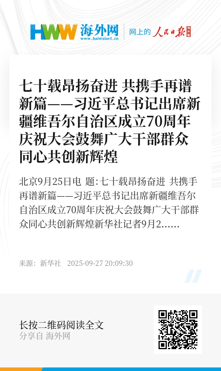 新华社北京9月25日电 题:七十载昂扬奋进 共携手再谱新篇——习近平总书记出席新疆维吾尔自治区成立70周年庆祝大会鼓舞广大干部群众同心共创新辉煌