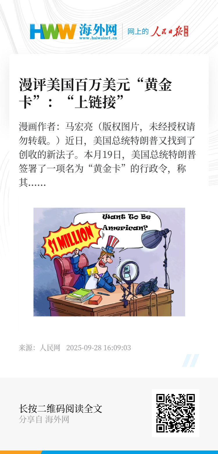 本月19日,美国总统特朗普签署了一项名为“黄金卡”的行政令,称其将为“具有非凡能力并愿意支持美国的外国人”开辟一条新的签证通道。美国政府网站显示已有三类产品:个人“金卡”标价100万美元;企业可赞助的“企业金卡”为200万美元;另有标价500万美元的“白金卡”。白宫网站发文称,申请人可“以创纪录的速度获得美国居留权”。