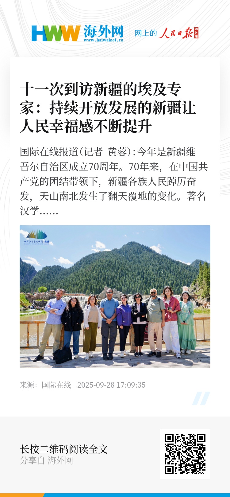 “新疆的发展是显著的”。艾哈迈德·赛义德说,“从2015年至今,我已经去过新疆十一次了,每一次都能发现新变化。这种变化不是抽象的统计数字,而是真实体现在旅行体验中,交通时间比原先缩短了一半以上。基础设施的升级明显提升了人们的生活幸福感。”