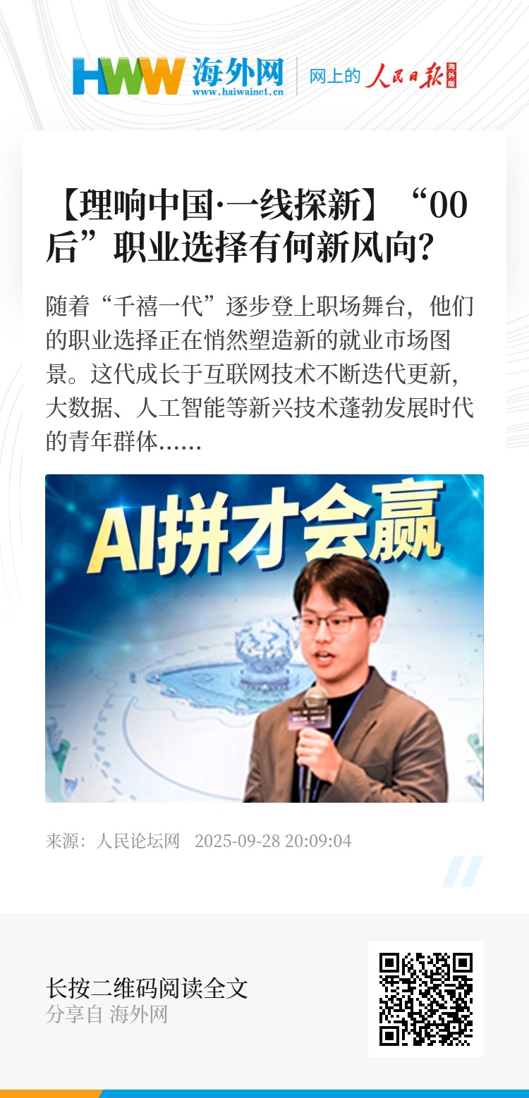 这种将热爱倾注职业的诉求,是驱动“00后”主动开拓新领域的动力;这场“00后”青年群体职业选择代际转型,更是社会发展与价值观变迁的青春注脚。未来,随着数智时代劳动关系治理法治化,平台治理体系进一步完善,新就业形态劳动者专业技能培训不断强化,期待为“00后”青年群体创造更多机遇。“00后”,未来可期!