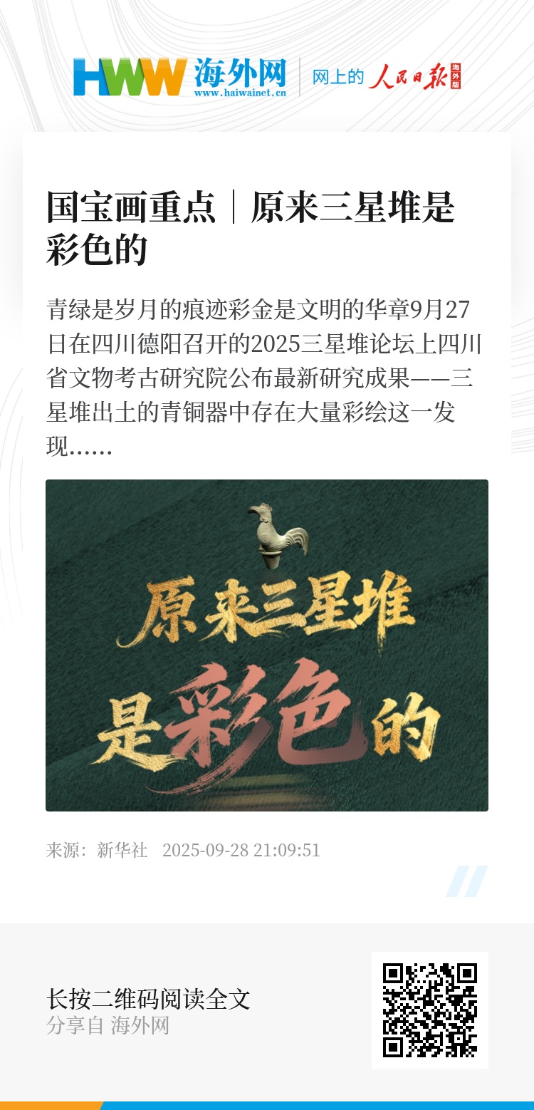 “过去通常认为,中国彩绘青铜器多见于战国秦汉时期。三星堆彩绘青铜器数量众多、工艺精湛、取材自然,将中国彩绘青铜器出现的时间提前了近千年。”负责此项研究的四川省文物考古研究院博士后刘百舸说。