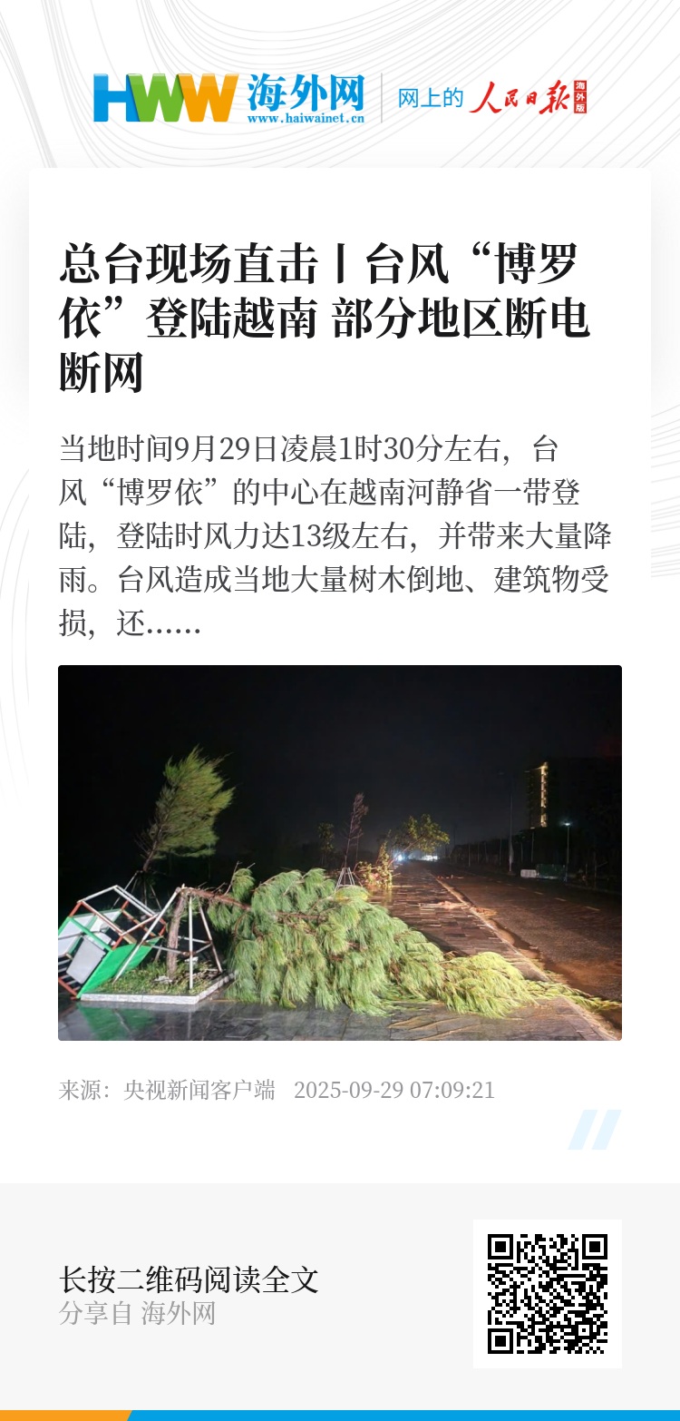 当地时间9月29日凌晨1时30分左右,台风“博罗依”的中心在越南河静省一带登陆,登陆时风力达13级左右,并带来大量降雨。