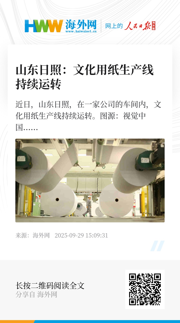32897818,.山东日照:文化用纸生产线持续运转,.2025-09-29 15:11:31,.204309,.陈亚楠、王珊宁