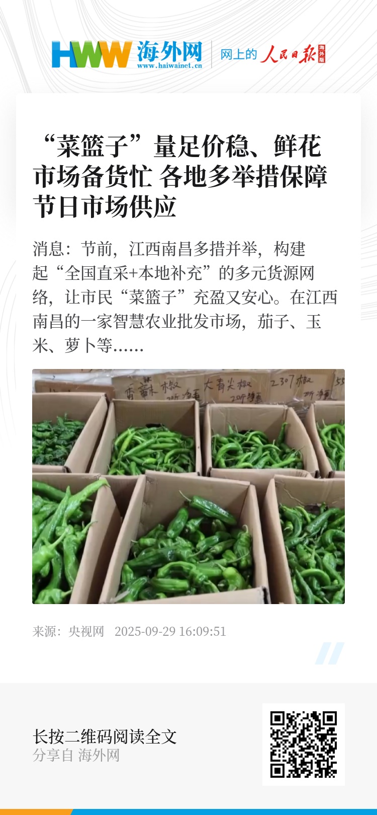 央视网消息:节前,江西南昌多措并举,构建起“全国直采+本地补充”的多元货源网络,让市民“菜篮子”充盈又安心。