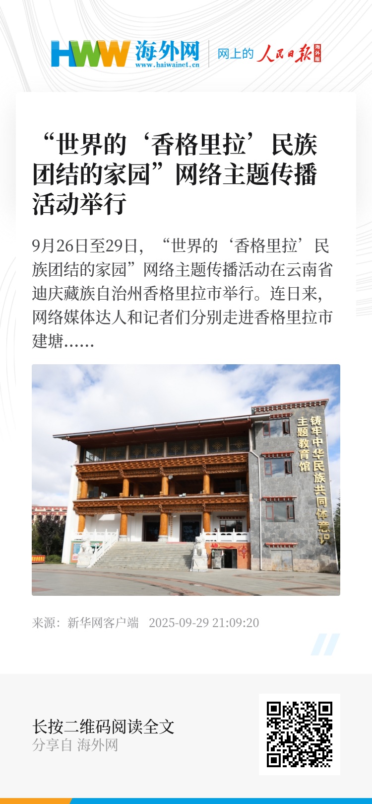 9月26日至29日,“世界的‘香格里拉’民族团结的家园”网络主题传播活动在云南省迪庆藏族自治州香格里拉市举行。连日来,网络媒体达人和记者们分别走进香格里拉市建塘镇金龙社区、迪庆藏族自治州文化馆、香巴拉民族团结主题公园、尼西乡汤堆村等地,深入了解香格里拉多民族团结互助、多元文化共融的美好故事。