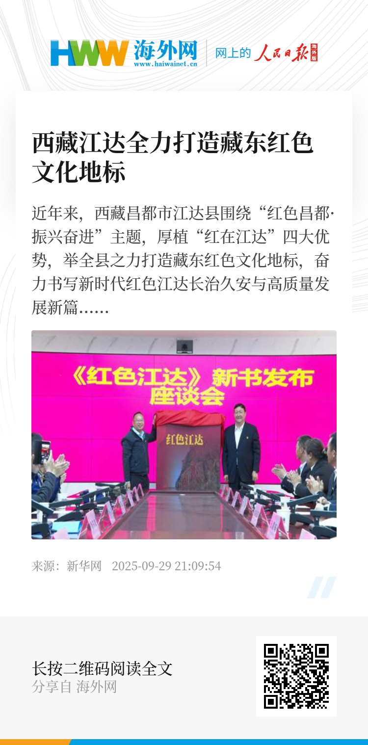 昌都市江达县多领域协同发力,以红色文化为引领,走出一条具有地方特色的高质量发展道路,为红色文化传承创新与区域治理层级提升提供借鉴样本。(罗贵午 林玥儿)