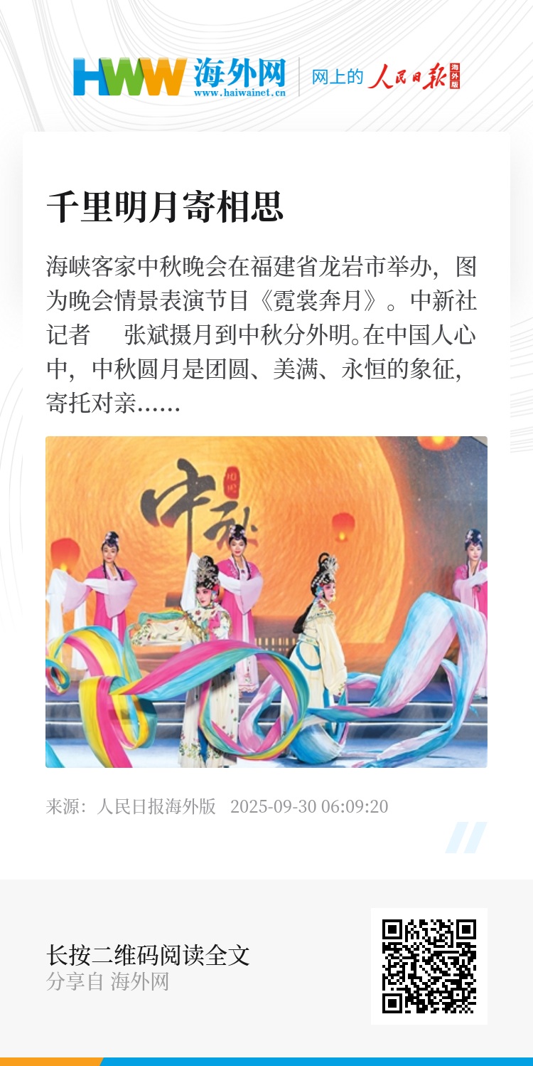 “月是故乡明——2025海峡两岸(漳州)中秋晚会”邀请两岸同胞同台演绎“两岸一家亲”,画出两岸融合“同心圆”。闽南语歌曲、两岸家书情景演绎、布袋木偶戏、歌仔戏表演都将惊艳亮相。“泉台共月 润泽同心”——泉州市台协会中秋联谊晚会、三明市宁化客家祖地“客家文化节”、南平市“情满中秋月、月圆人团圆”两岸同胞共庆中秋叙团圆活动同样精彩不断。