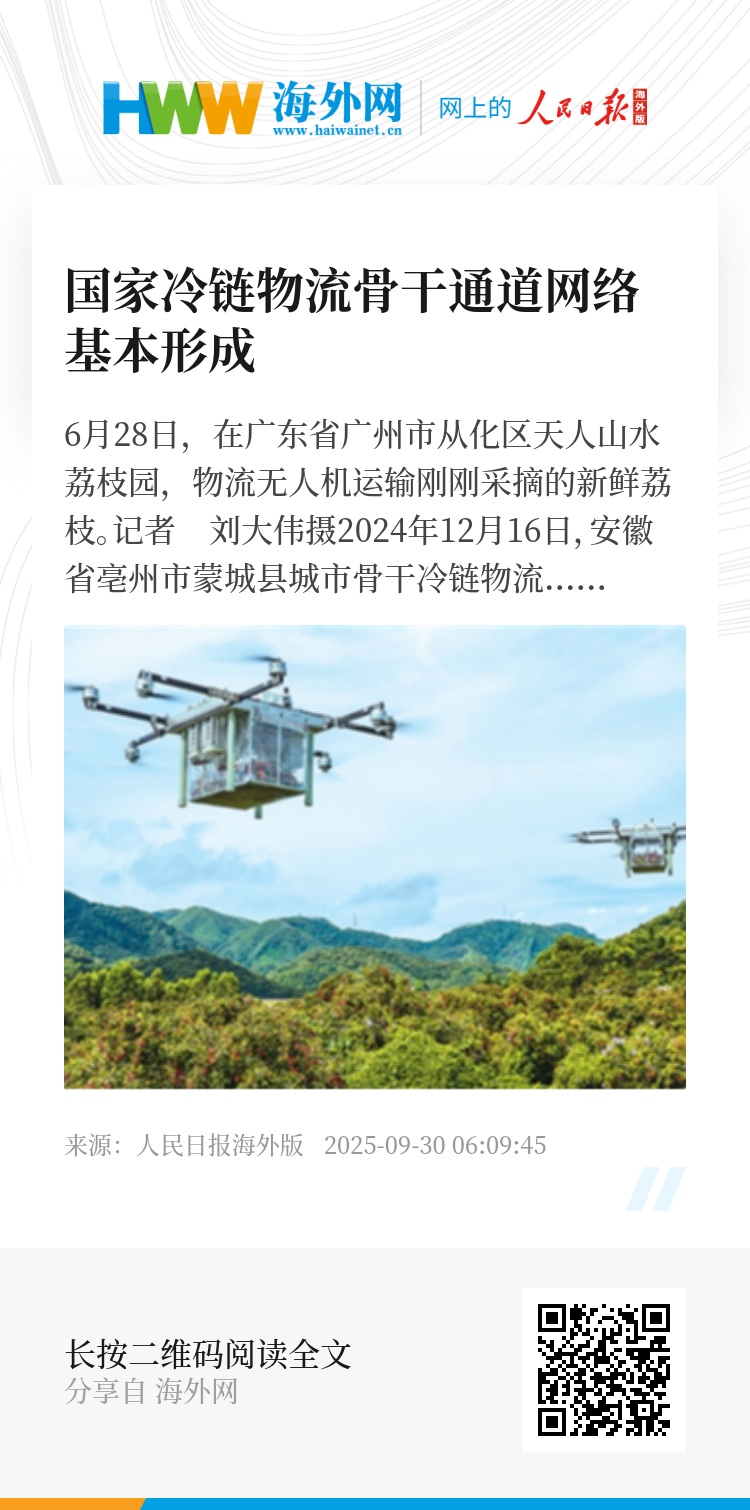 据悉,下一步,国家有关部门将推进冷链物流基地与现代农业、冷链产品加工等产业协调融合发展,加快建立起畅通高效、安全绿色、智慧便捷、保障有力的现代冷链物流体系。(叶晓楠 夏雨梦)