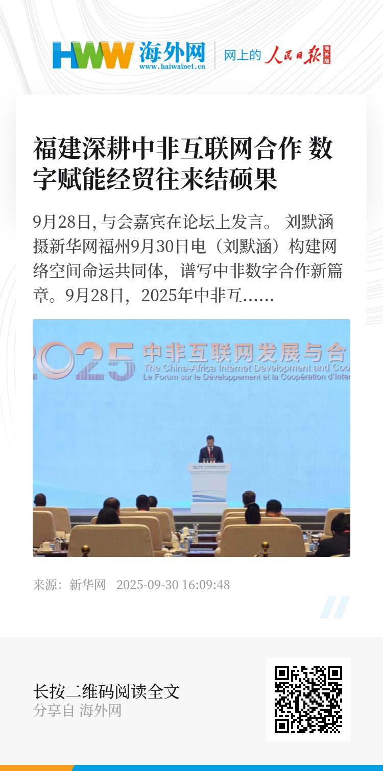 新华网福州9月30日电(刘默涵)构建网络空间命运共同体,谱写中非数字合作新篇章。9月28日,2025年中非互联网发展与合作论坛在福建省厦门市举办。